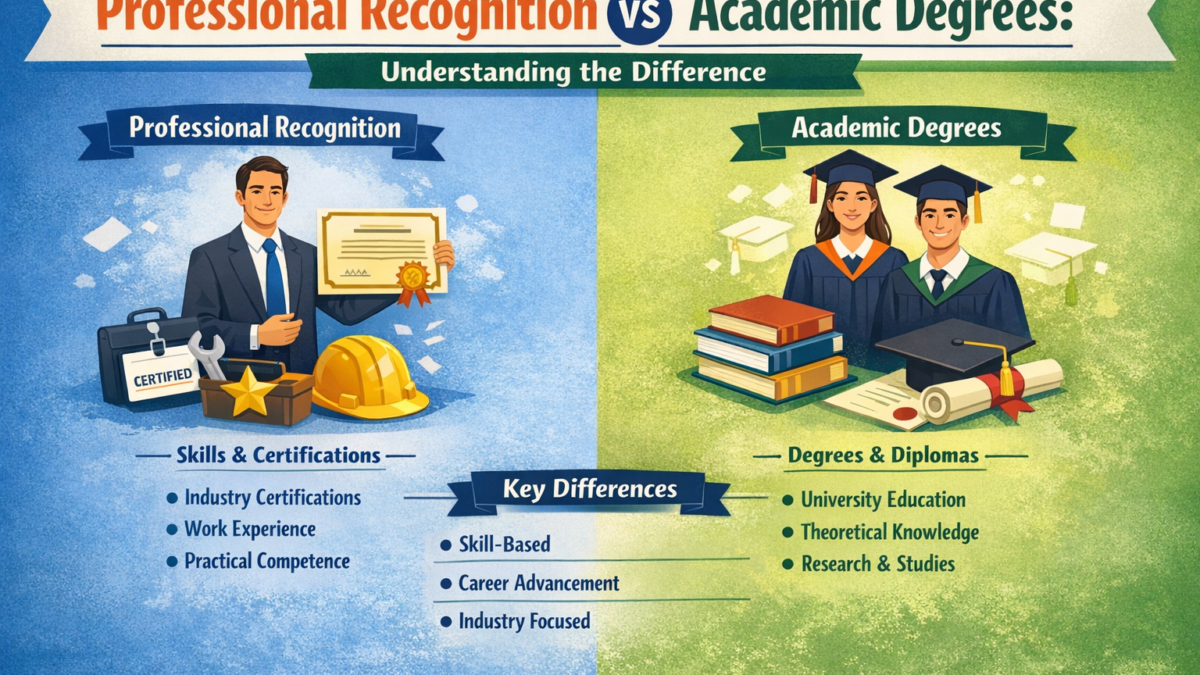 January 15, 2026Many professionals confuse academic degrees with professional recognition. While academic degrees focus on theoretical education, professional recognition validates experience, skills, and practical achievements.